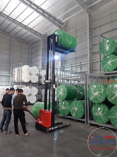 xe nâng đứng lái 1 tấn nâng vải cuộn