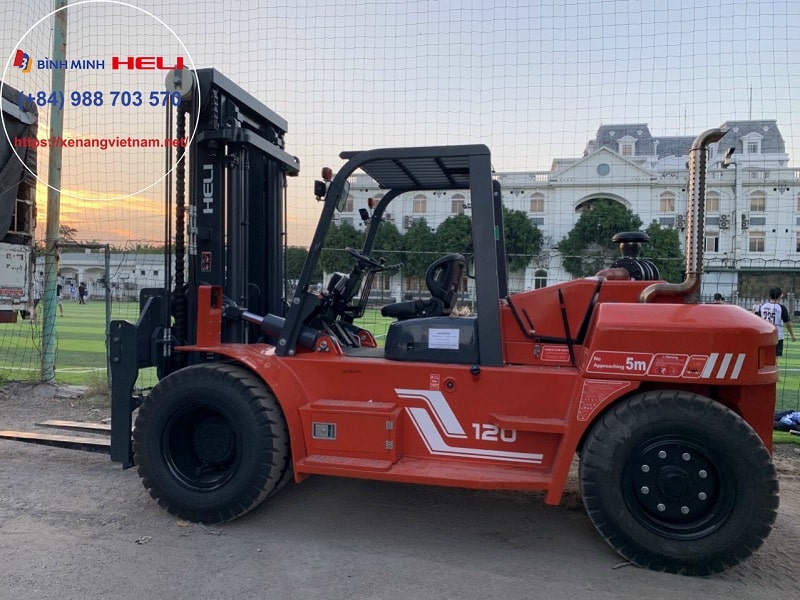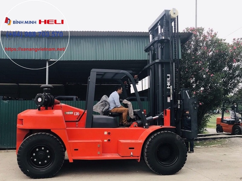 - Giá xe nâng Heli 12 tấn mới 100% chưa qua sử dụng sẽ rơi vào khoảng 1.600.000.000 còn tùy thuộc vào cấu hình cùng yêu cầu của khách hàng.