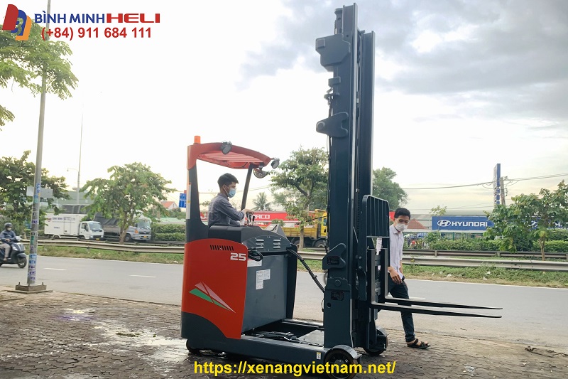 Nó thuộc dòng sản phẩm Electric Reach Truck của Heli có mã là CQD20/25-GC2R với khả năng di chuyển trong kho hẹp, chiều cao nâng tầm dưới 12.5 mét.