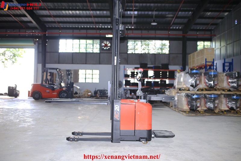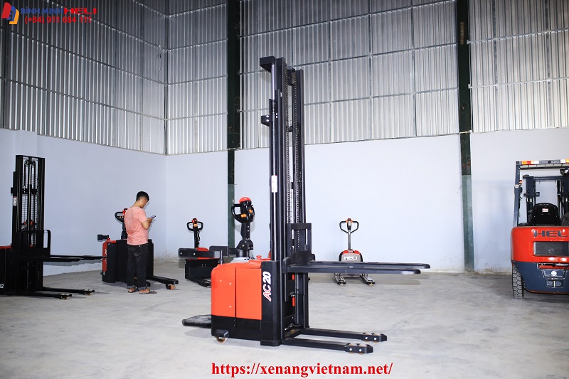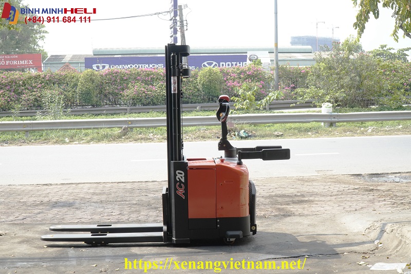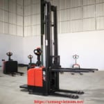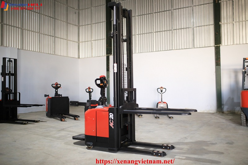 Đây là dòng Xe Nâng Điện Đứng Lái loại nhỏ hay gọi là dòng Stacker với khả năng hoạt động linh hoạt trong môi trường nhà kho giá kệ có lối đi hẹp chỉ 2.2 mét là đủ.